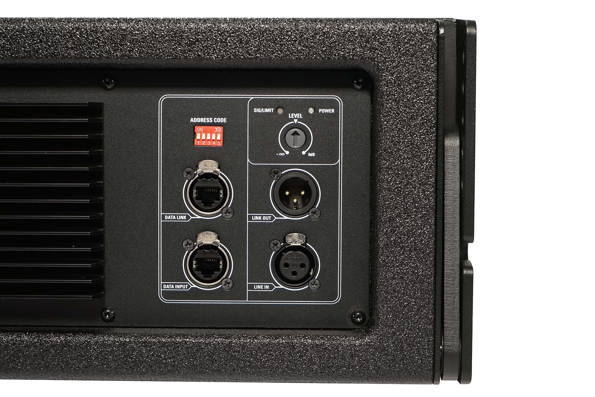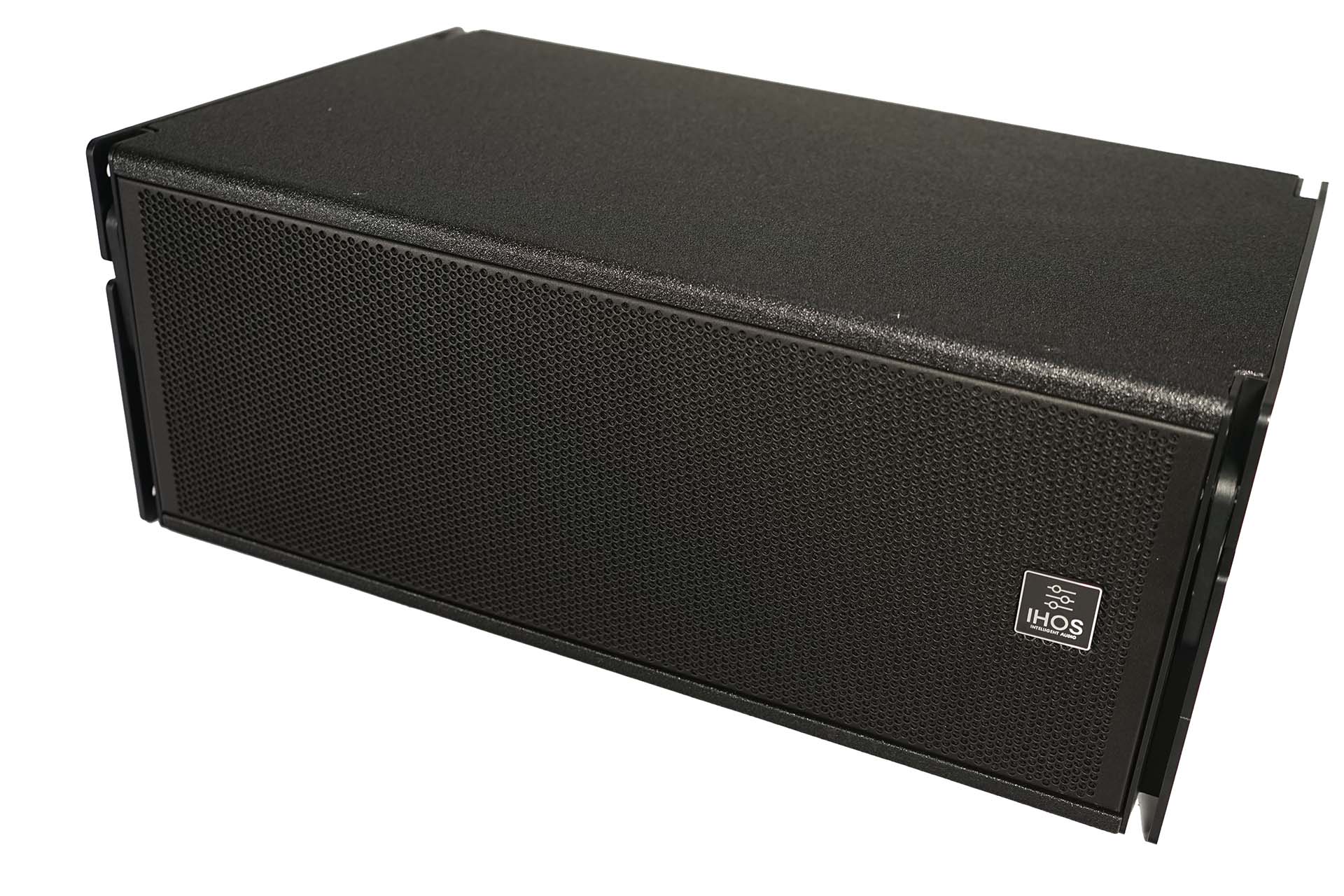 Dilos Line array Flying configuration that includes 8 pcs 3 way active with DSP Dilos Plywood satelite , 4 pcs Dilos active plywood bandpass subwoofer with DSP and a Dilos FlyBar.