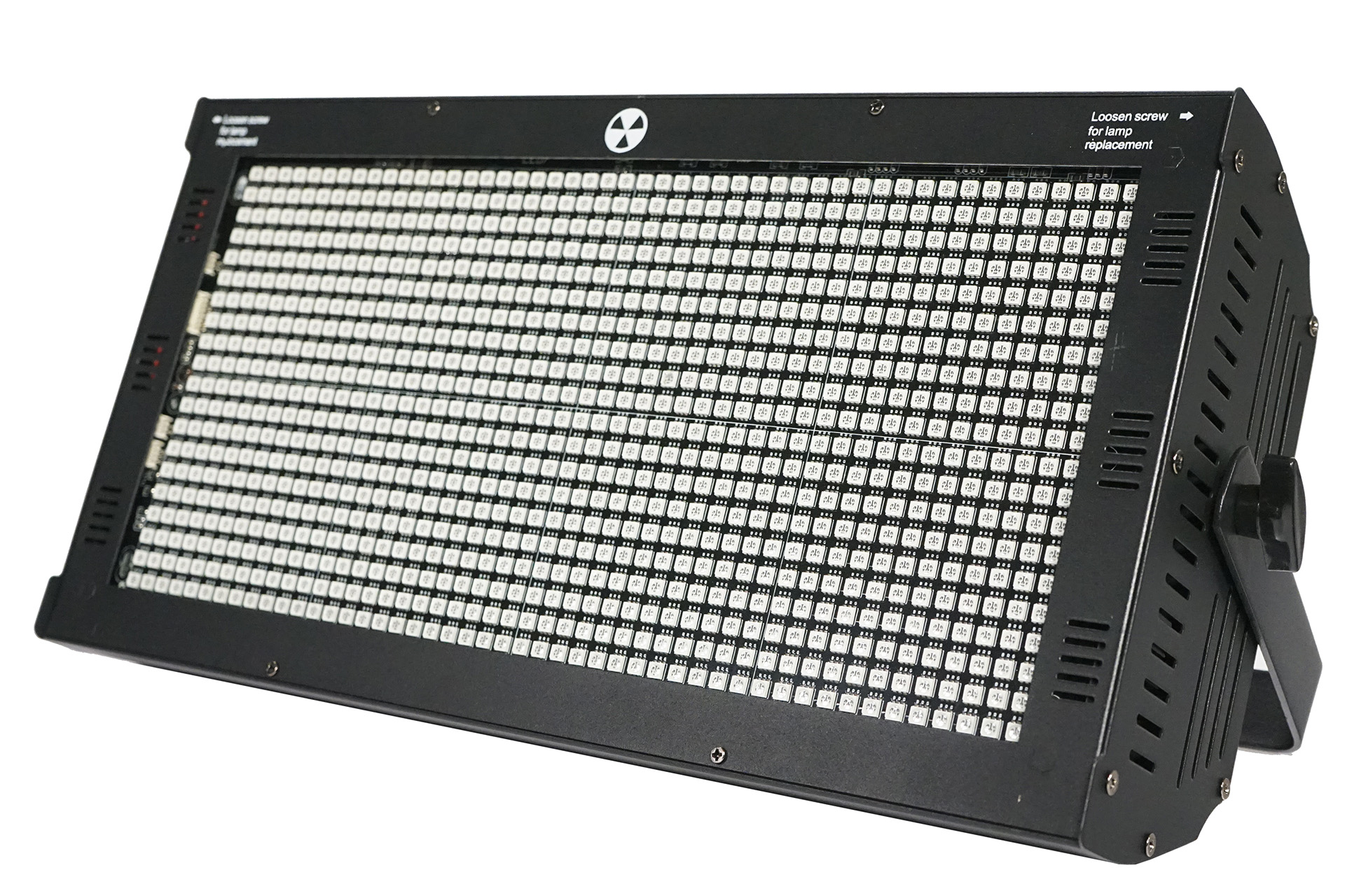 Pixel RGB Strobe, 960 leds SMD, 8 Pixel Sections, Beam Angle: 120 degrees,Strobe frequency: 1~30HZ, 3 DMX modes CH03, CH09, and CH24 channels, powercon input/output, IP20, 6 kg.