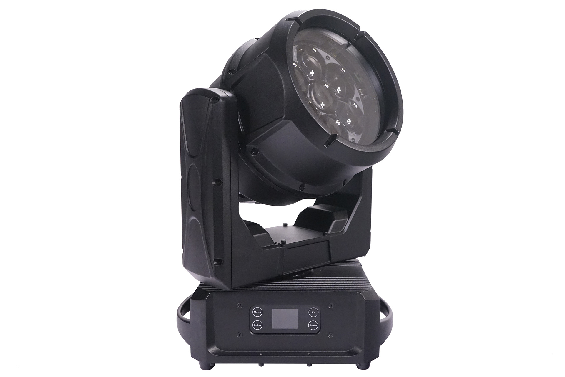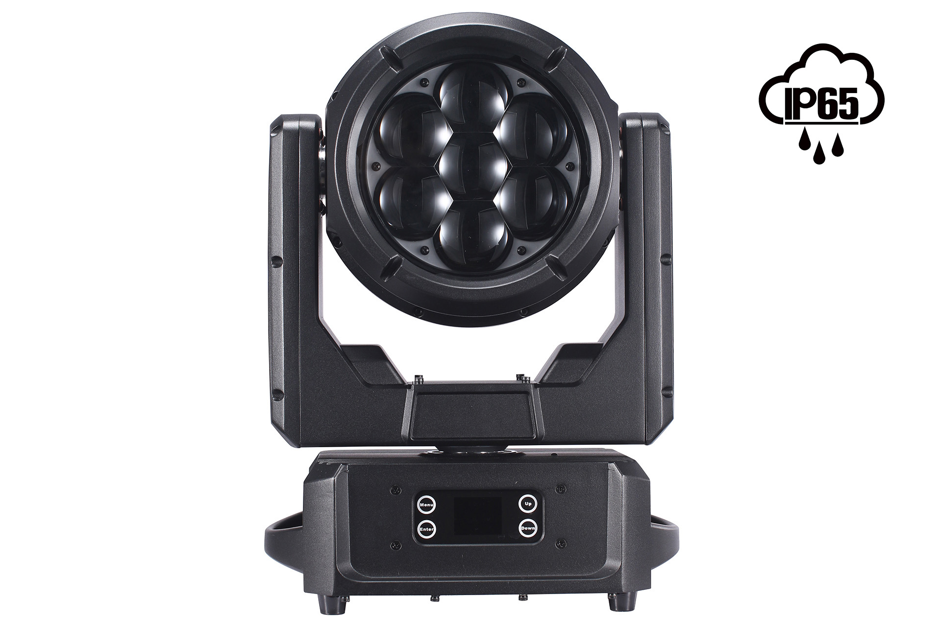 Surprisingly compact and powerful IP65 wash/beam moving head, 7 x 60watt leds RGBW, Zoom Range:3° to 45°, vortex effect lens rotation, full pixel control, waterproof protection, and low noise operation, CTO:2500K to 8000K, Luminous: 28000lm@3°@5M, ultra-lightweight 12kg.
