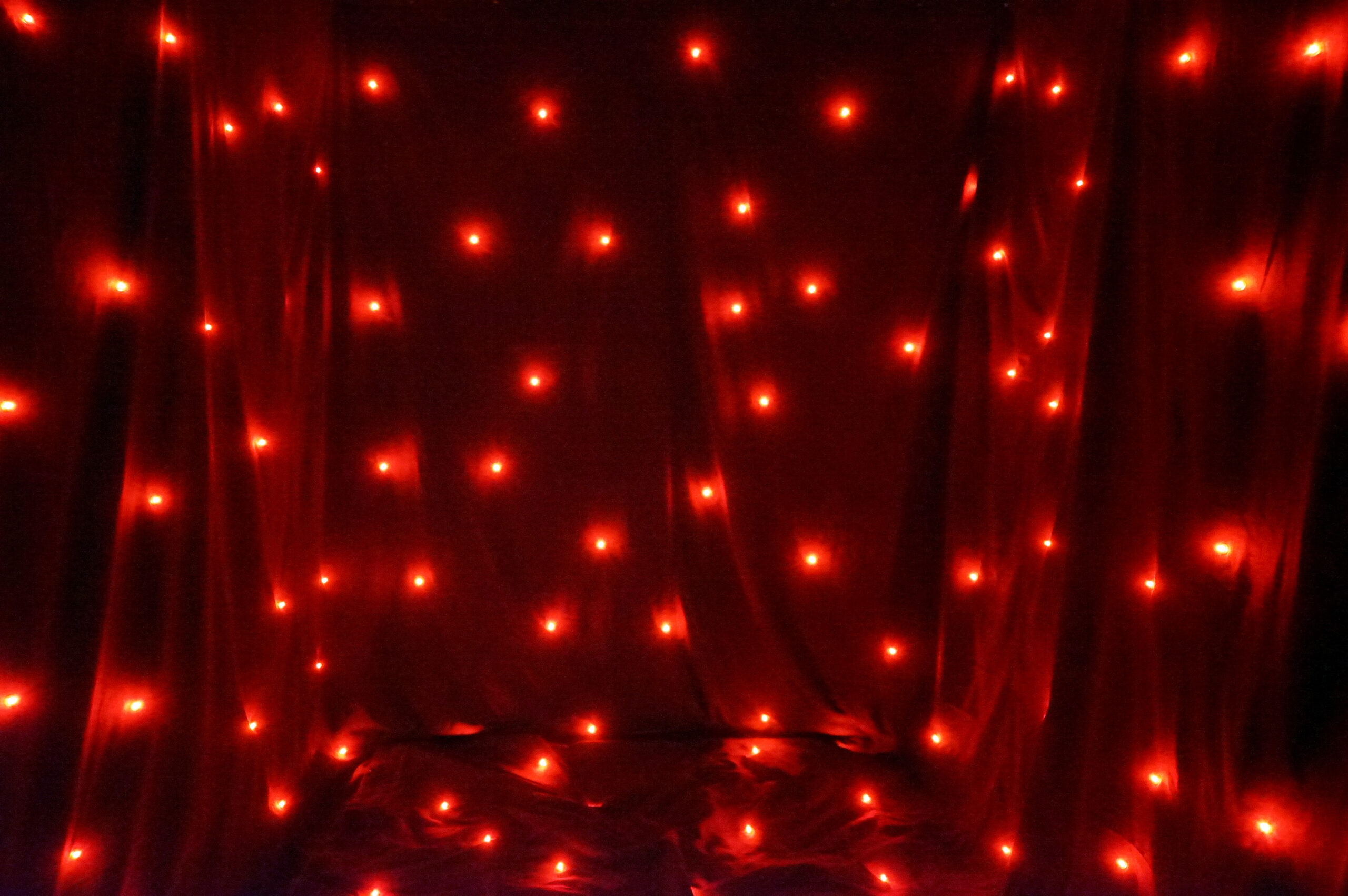 Led star curtain 6x4m, RGB tri-color Super Bright Epistar LED , Led viewing angle 140 degrees, suitable for big theatre, stage and TV studios. Fireproof Molton Backdrop SGS certified , 75 watt Professiοnal Led DMX controller, 17 preset programs and color macros that can be activated at any control mode, included also high quality flight case.