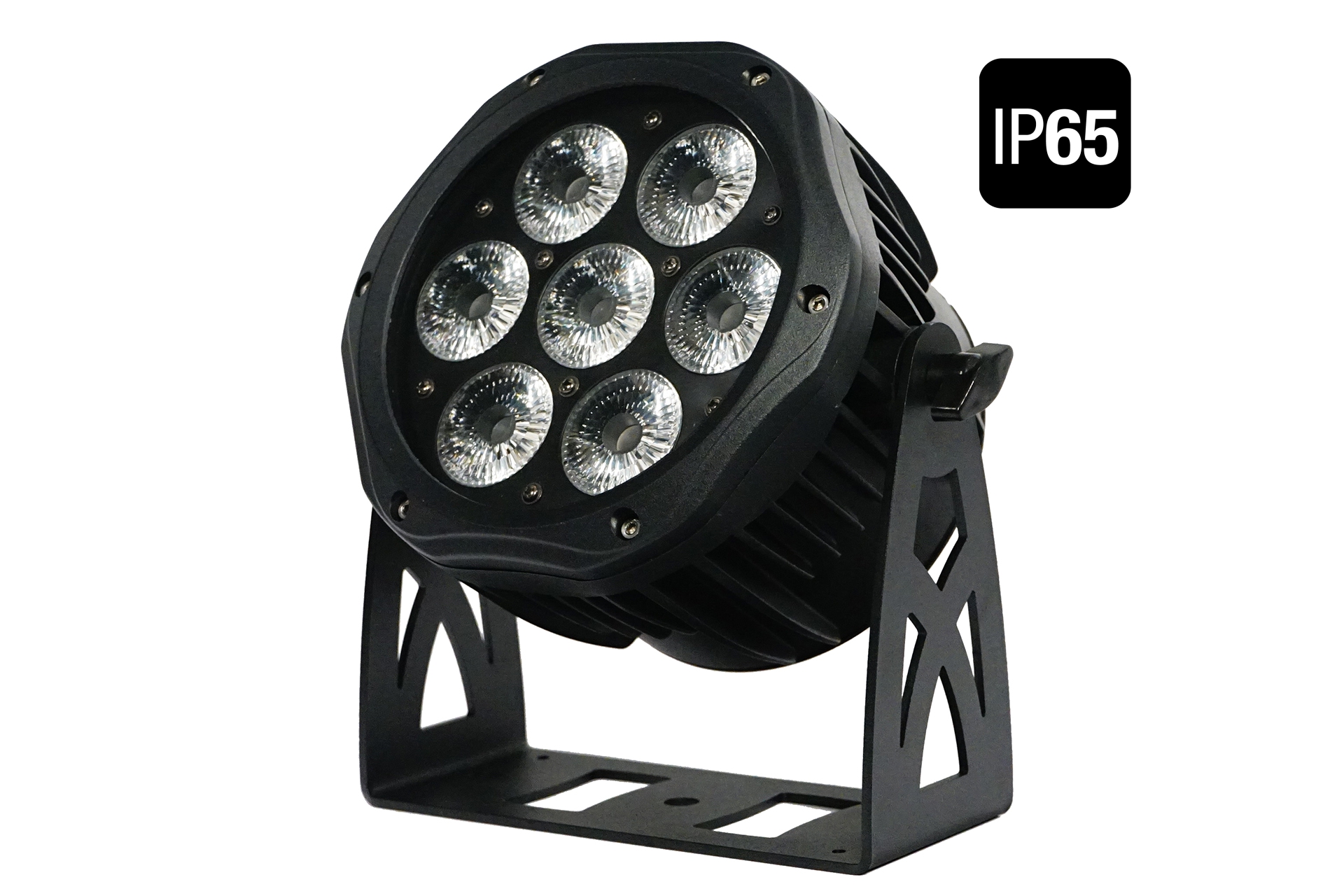 Weatherproof aluminium led par with IP True powercon connectors , Beam aperture: 25°, 7 RGBW+Amber+UV 15w LEDs (6 in1)Dimmer: 0-100% stop/strobe effect, aluminium 3kg, noiseless cooling system.