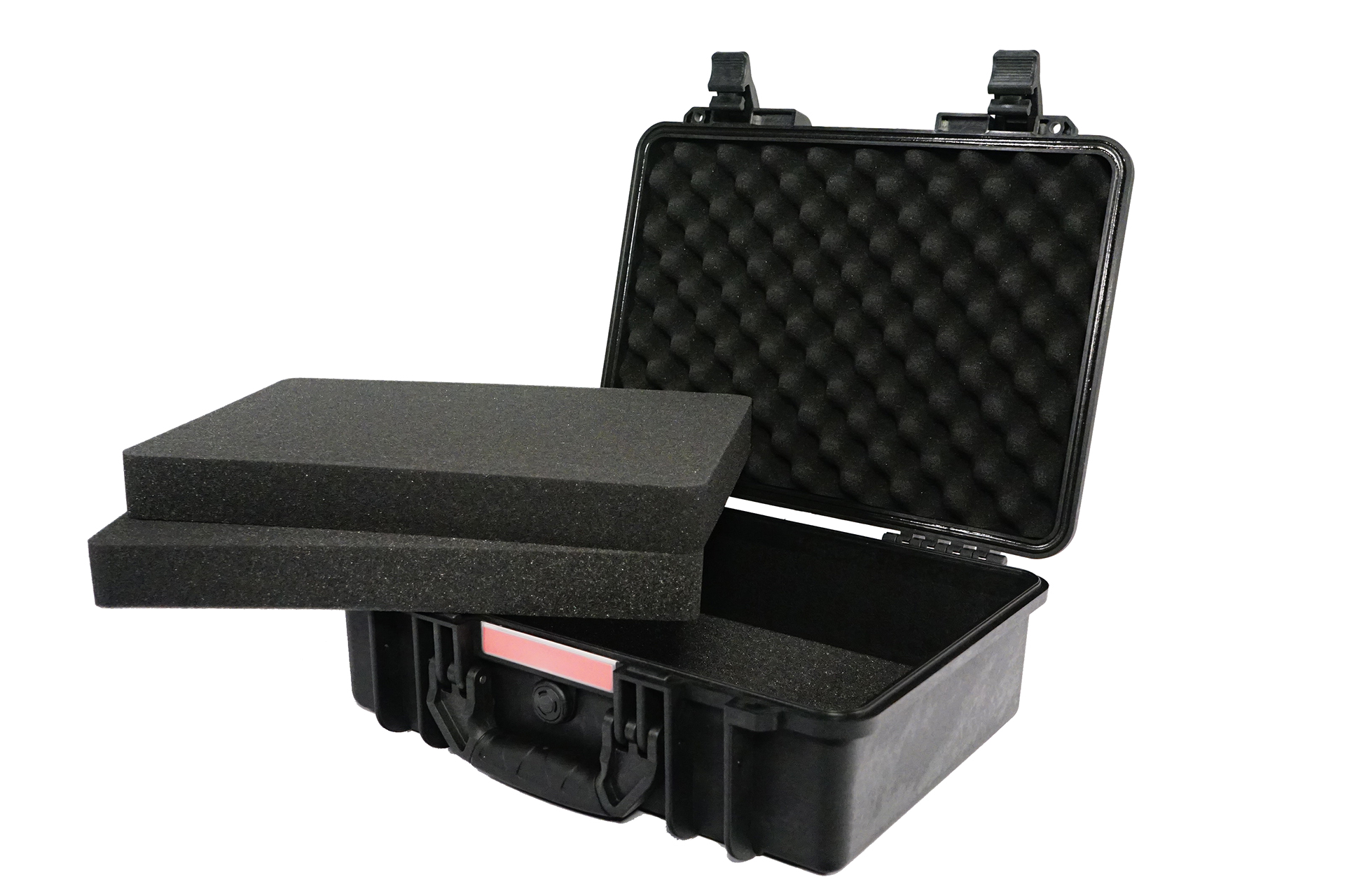 Weatherproof IP67 plastic case with pre cutted foam for general applications, material TSU19 resin, external dimensions 46x36x18 cm , inside dimensions 43x30x16 cm, lid depth 4.7 cm, 2.3 kg