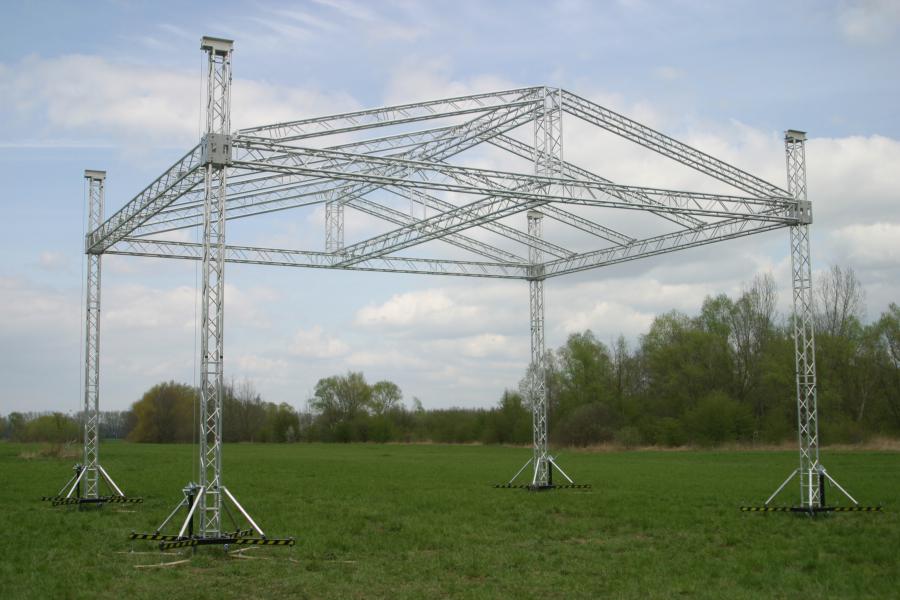 Completed roof system, 12m x 10m and clear height 7m, Total loading capacity 3500kg Included 4 towers , roof construction, canopy , keder profile.