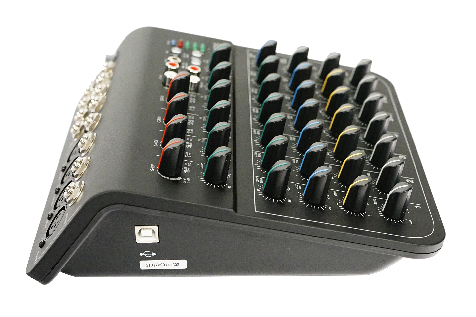 Compact, portable mixing console, 4mono + 2 stereo input, 1bus, USB interface