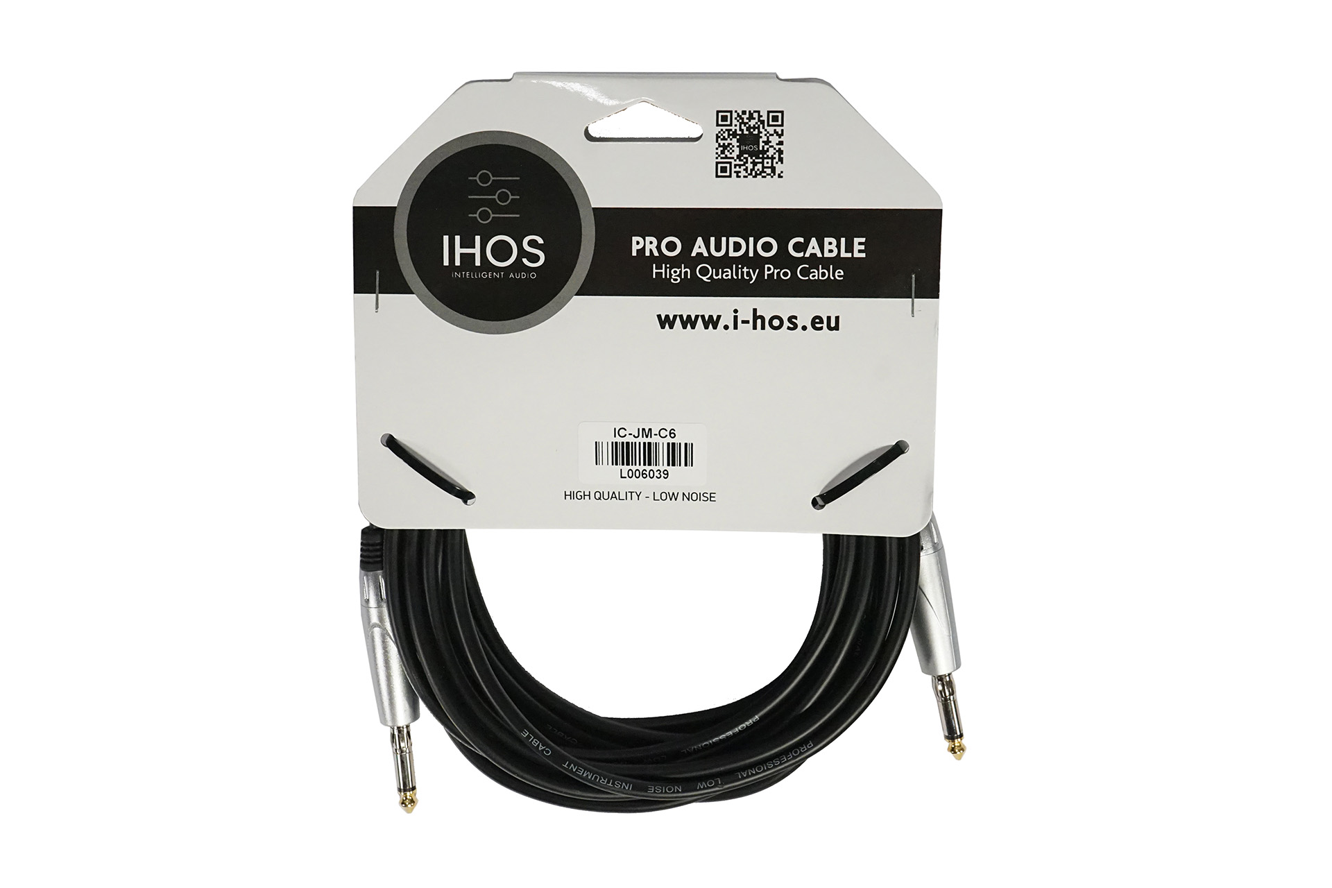 Instrument cable 6 meter, black, both sides 6.3mm mono Jack.