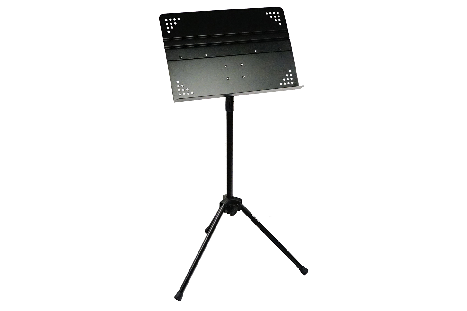 Aluminium music stand, long-lasting design, foldable borad for easy carry, board dimensions 48x33.6cm, adjustable height 80-130cm, Non-slip rubber feet, angle-adjustable sheet music platform,tip-resistant tripod base.